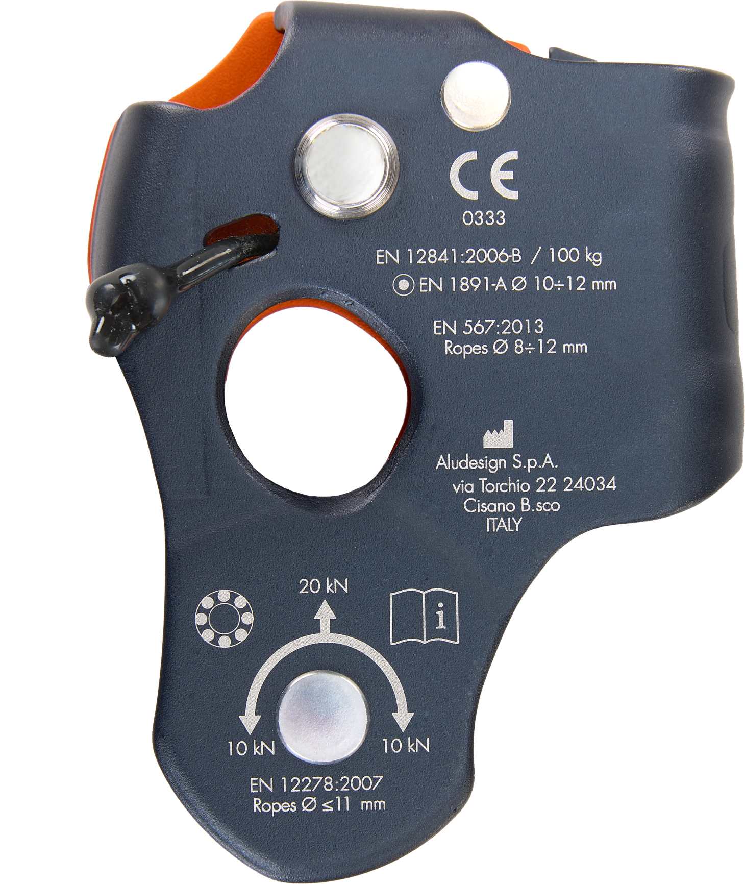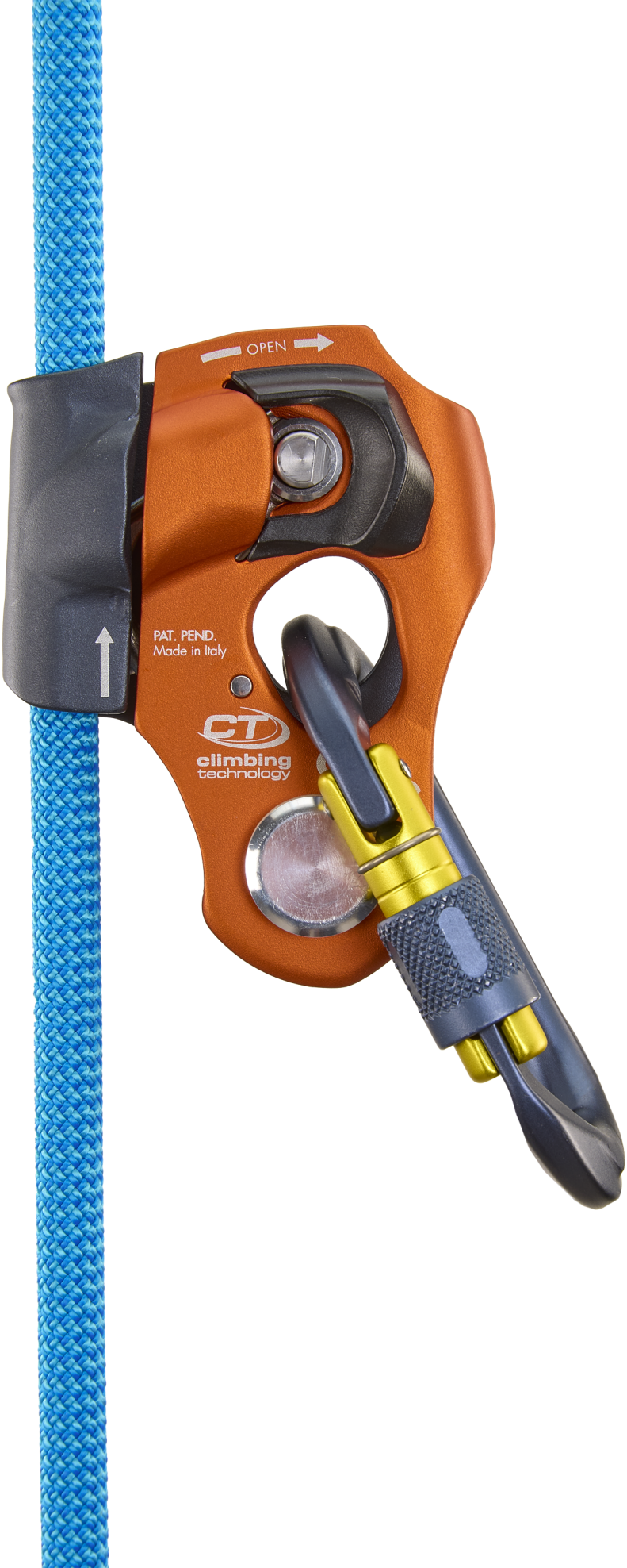 - the easy opening, via an intuitive release button, makes the installation of the device on the rope swift – no matter the mode that is going to be used in – even with gloves on or while operating in difficult conditions;