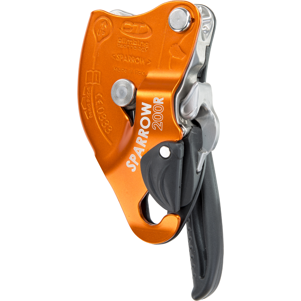 Self-braking descender for rope work, the evolution of the SPARROW 200 descender has been developed for high workloads. It allows the operator to lower themselves on the working line, to position themselves on the working line and to ascend the same rope. It is ideal in the event of assisted lowering of two people with the device installed at the anchor (the operator lowers the rescuer and the person being rescued) or for simultaneous lowering of two people (rescuer lowers themselves with the injured person).
