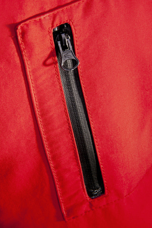 - 1 patched smartphone pocket with splashproof zip closure, 2 inset pockets with splashproof zip closure