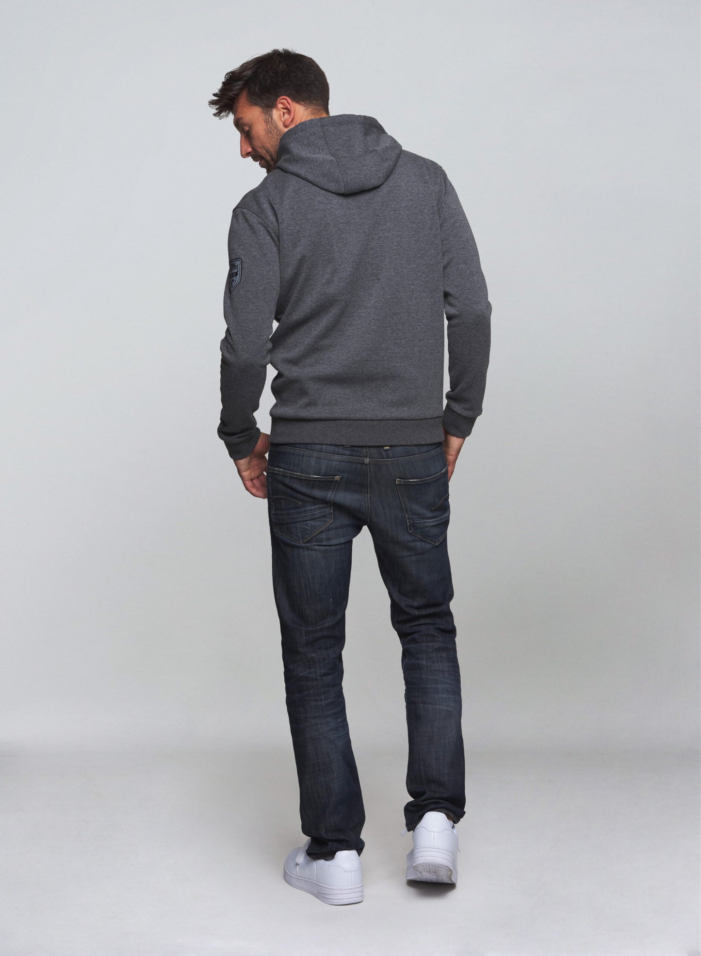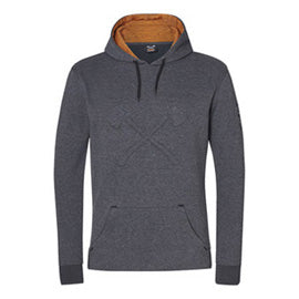 Grey, interior of hood in orange marl colour, 55% cotton, 45% polyester, double-faced jersey, hood cord with metal end caps, kangaroo style front pocket, embossed-effect cross axes, “STIHL TIMBERSPORTS® KISS MY AXE “badge on sleeve.