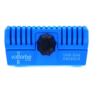 Vallorbe Saw Bar Dresser. The essential tool that allows you to easily and quickly maintain your chainsaw's guide bar. The two applications for the bar dresser are, chamfering the edges of the guide bar and to redress the rails at 90 degrees. Benefits of saw bar dressing are better lubrication of the chain due to the excellent surface quality obtained by the file Increased life cycle of the guide bar approximately 30%. Made in Switzerland.