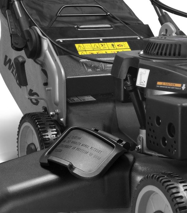 - The premium heavy duty handlebars fitted to the WB537SCV-3IN1-BBC shaft drive lawnmower can be easily folded for storage or transportation.
